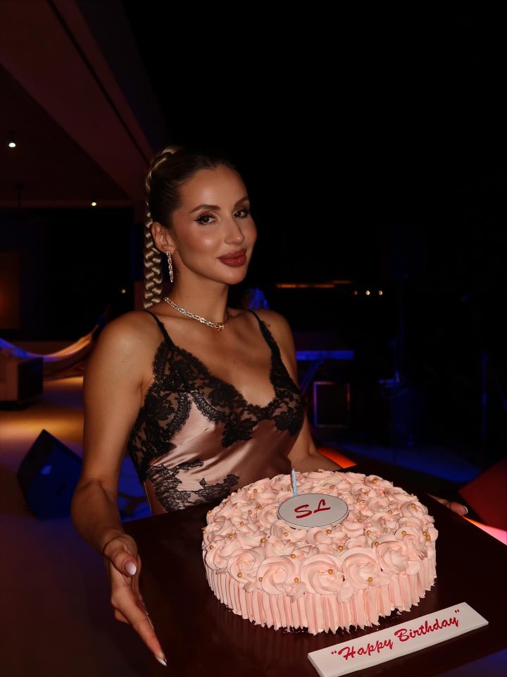 Зірка обрала для свята ніжну білизняну сукню з мереживом і глибоким розрізом до стегна, у якій виглядала неймовірно жіночно. На світлинах з Instagram — квіти, тортик у вигляді рожевих троянд та щаслива усмішка іменинниці.