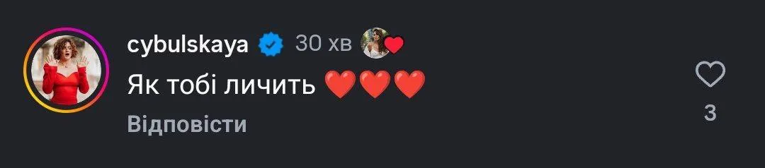 Серед коментаторів відзначилася навіть відома українська співачка Оля Цибульська, яка також залишила теплі слова під дописом акторки.