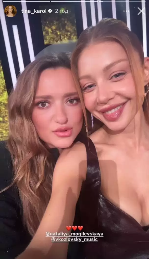 Про це артистка заявила у сториз Тіни Кароль в Instagram. Стоячи поруч зі своєю колегою, Могилевська щиро зізналася, що надихається нею.