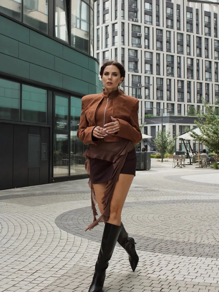 Популярна співачка Настя Каменських опублікувала стильну фотосесію просто з вулиць міста. Знаменитість постала у мініспідниці, шпильках і трендовому осінньому образі.